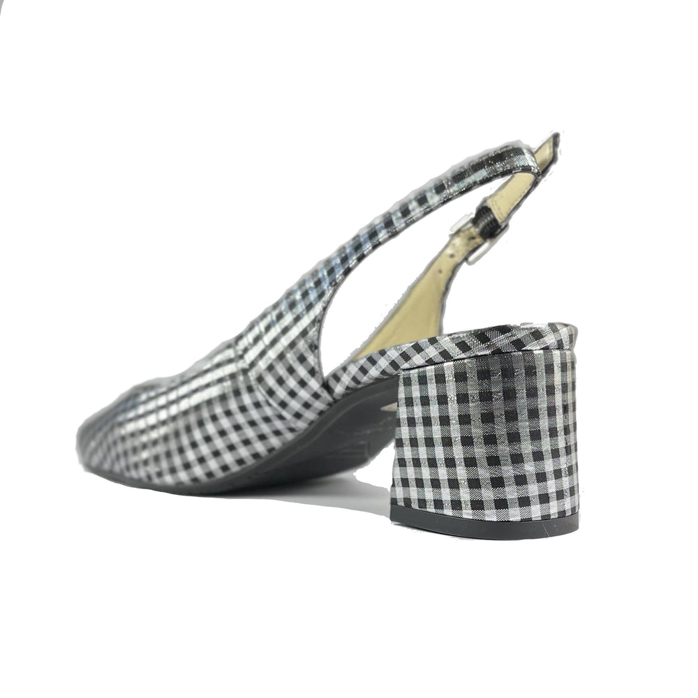 'Jeanne' vegan textile slingback heel by Zette Shoes - metallic silver/black gingham