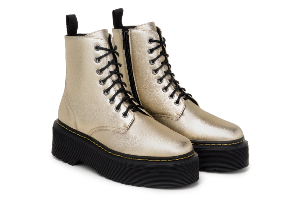 'Quinn' vegan-leather boot with stacked sole by Zette Shoes - pale gold
