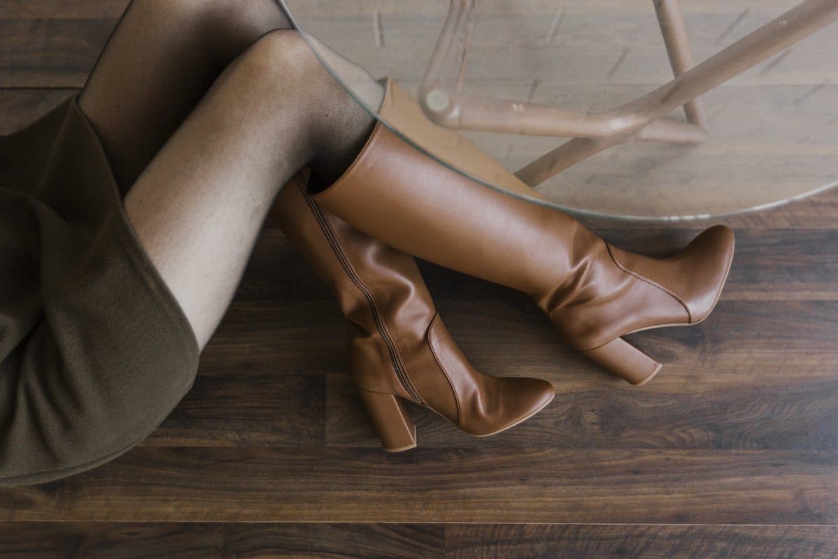 Claudia tan vegan leather knee high boots. Ethical and sustainable women's vegan boots.
